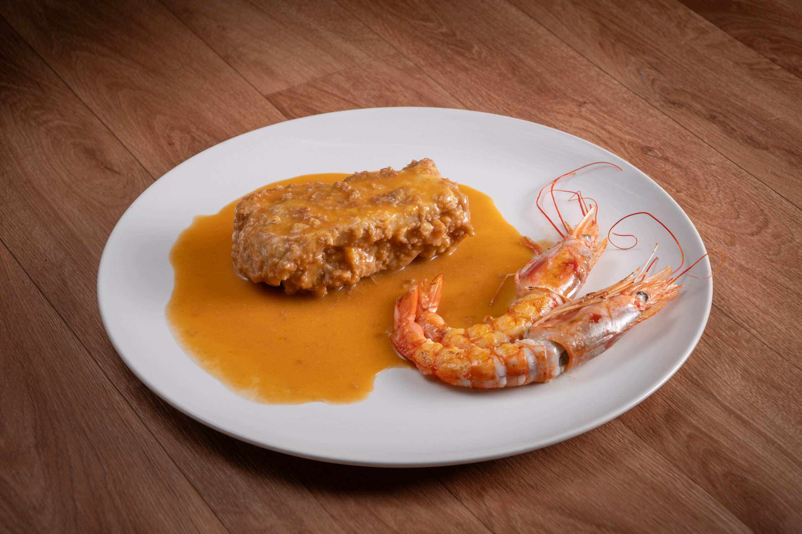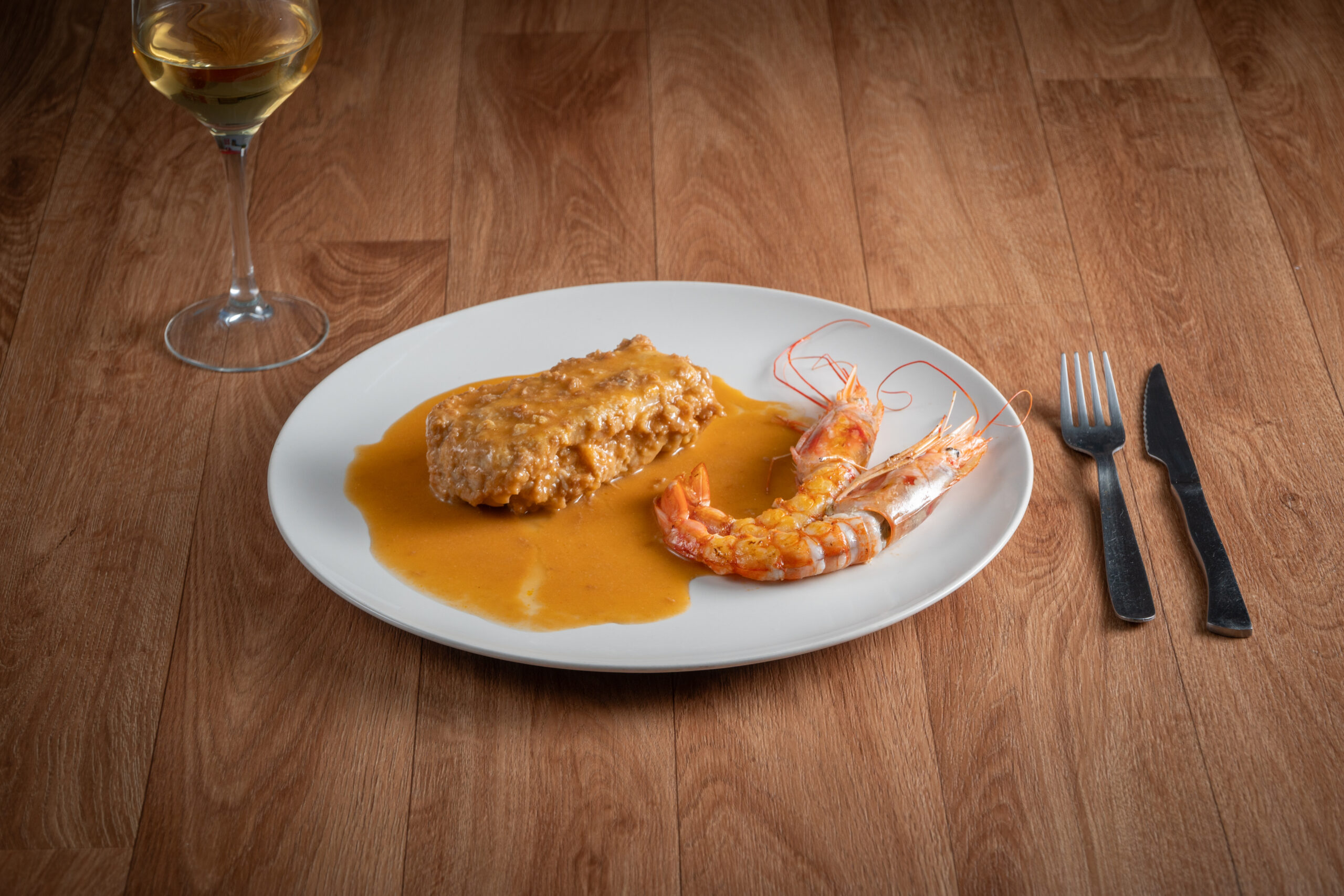 Merluza rellena de suave pudín de cabracho, acompañada de una deliciosa salsa americana. Producto cocinado y pasteurizado para conservar refrigerado. Sin conservantes ni colorantes.